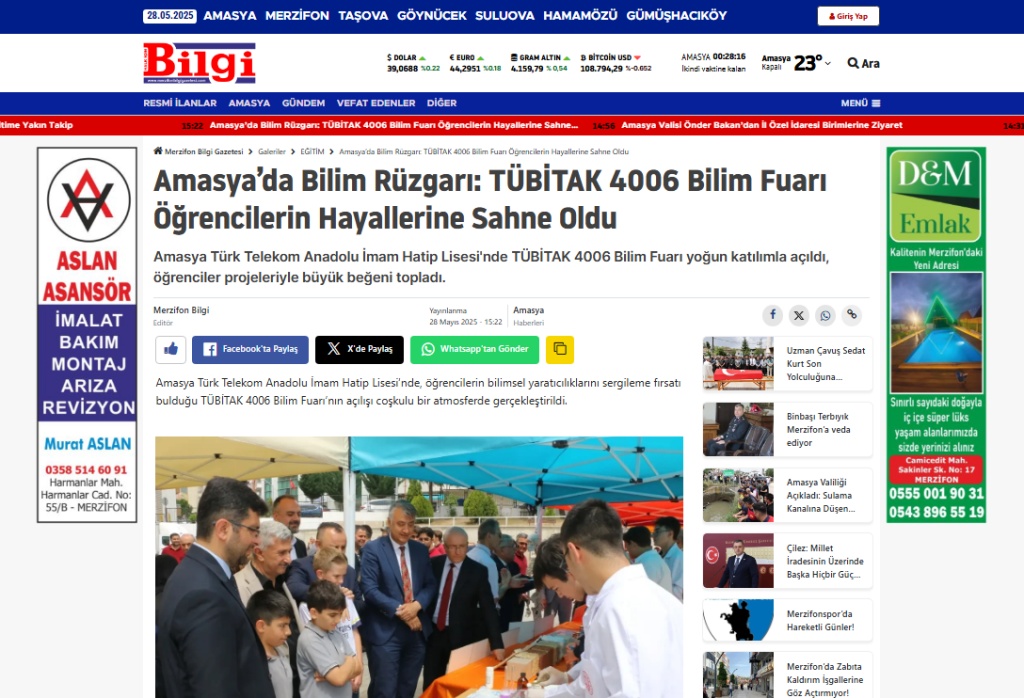 Türk Telekom Anadolu İmam Hatip Lisesi bahçesi, 27 Mayıs Salı günü saat 10.30'da rengârenk bir bilim ve sanat şölenine ev sahipliği yaptı. TÜBİTAK 4006 Bilim Fuarı kapsamında düzenlenen etkinlikte, öğrencilerimizin özveriyle hazırladığı 19 farklı proje ziyaretçilerin beğenisine sunuldu.