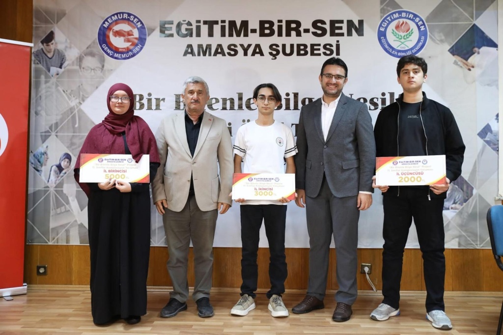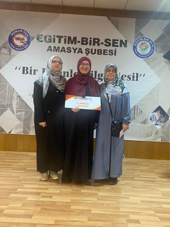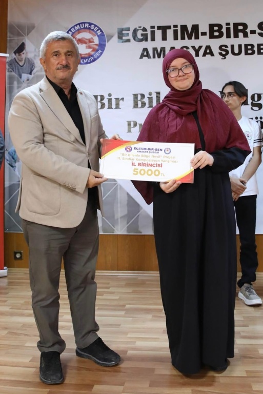 Milli Eğitim Bakanlığı ile Genç Memur Sen arasında imzalanan protokol ile 9.kez gerçekleştirilen, Bir Bilen İle Bilge Nesil projesi Amasya ayağında, okulumuz öğrencisi Şükran Eslem Cebeci 11. sınıflar arasinda il birincisi olmuştur. Öğretmen ve öğrencimizi tebrik ediyoruz.