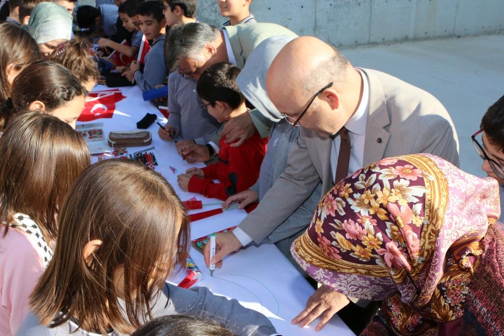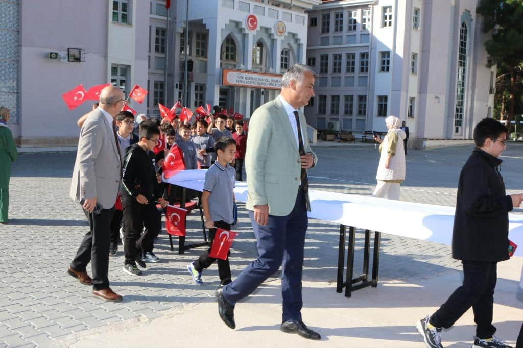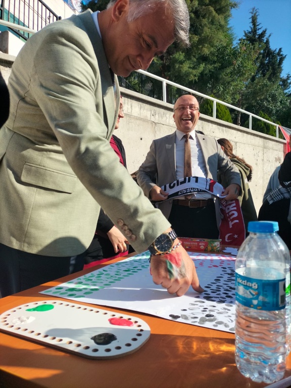 07 Ekim 2025 Salı günü eğitim camiamızın ortak vicdanını güçlü biçimde temsil etme sorumluluğunu yerine getirmek amacıyla okulumuzda '' Filistin Farkındalık Etkinlikleri'' gerçekleştirildi. Amasya İl Milli Eğitim Müdürü Sn. Mehmet Ali KATİPOĞLU etkinliklerde öğrencilerle birlikte yer aldı. Öğrencilerimizle birlikte resim, parmak boyama, mektup yazma gibi etkinliklere katılan İl Milli Eğitim Müdürümüz bir röportaj verdiler. Toplu fotoğraf çekimiminin ardından okulumuzdan ayrıldılar. Sn. Milli Eğitim Müdürümüz ve etkinliklerde gönüllü görev alan öğretmenlerimiz başta olmak üzere Filistinli kardeşlerine destek olan tüm öğrencilerimize teşekkürler.